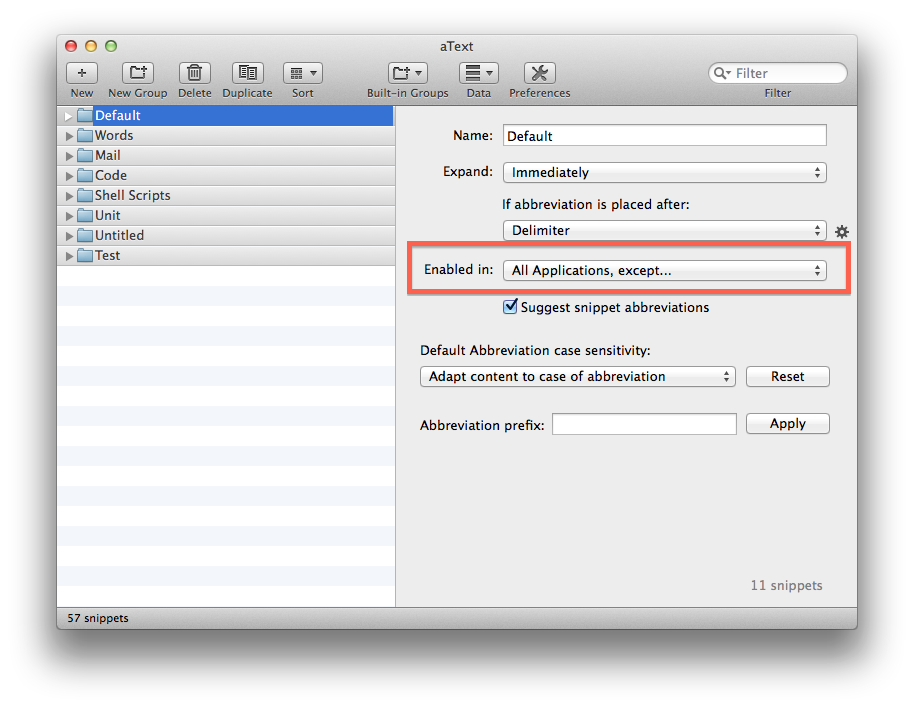 How to disable aText in specific applications?